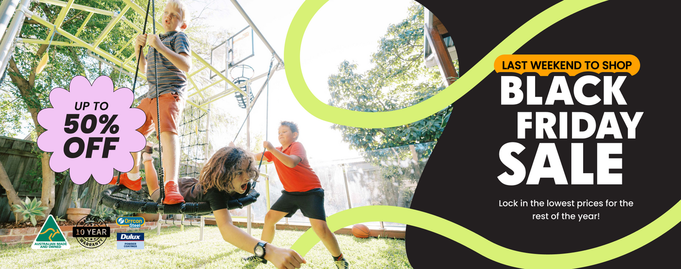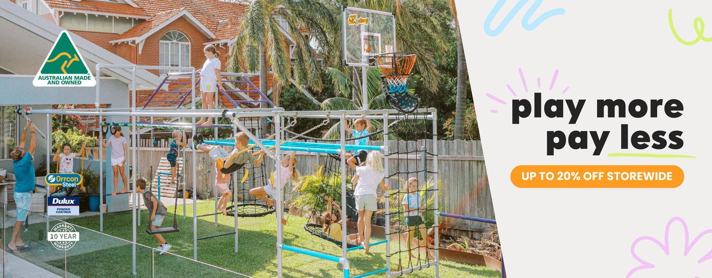 All Funky Monkey Bars® are made from Australian galvanised steel tube and stainless steel screws and coloured with Dulux outdoor powder coating - it'll withstand the weather and last for generations.