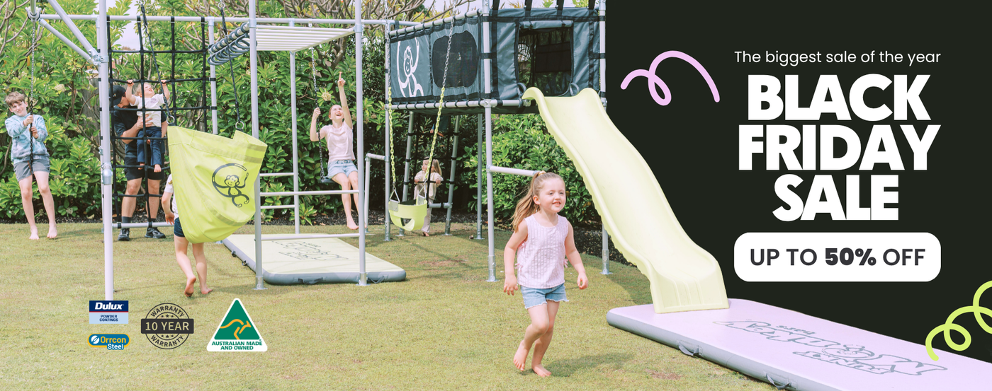 Award-winning, modular, free-standing, height-adjustable monkey bars and swing sets for your backyard. Manufactured in Australia, to high quality standards, as only the best will do for our kids.
