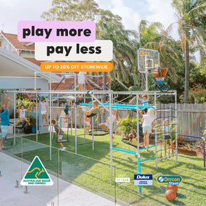 All Funky Monkey Bars® are made from Australian galvanised steel tube and stainless steel screws and coloured with Dulux outdoor powder coating - it'll withstand the weather and last for generations.