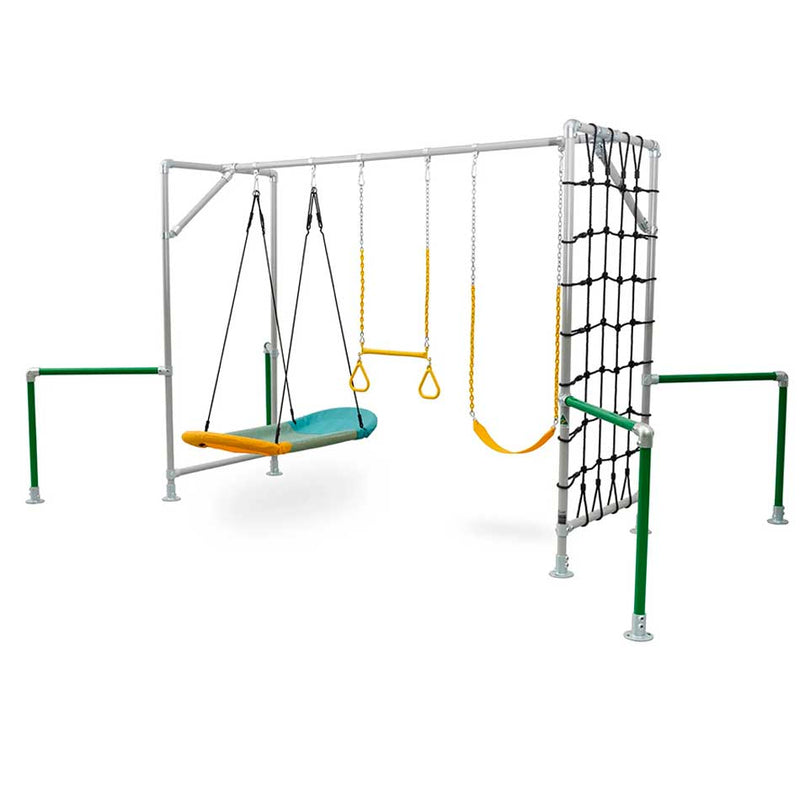From nest swings to trapeze bars to cubbies, mix and match accessories to design a play zone that’s as unique as your kids.